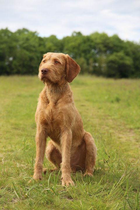Robin is a beautifully constructed Wirehaired Vizsla—athletic, proportional, and refined. He is the perfect blend of elegance and sturdiness, with structure that allows him to move effortlessly in the field yet maintain the classic, noble presence the breed is known for.